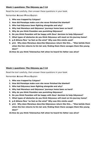 The Odyssey Book 1 Questions And Answers By Everything Englilish